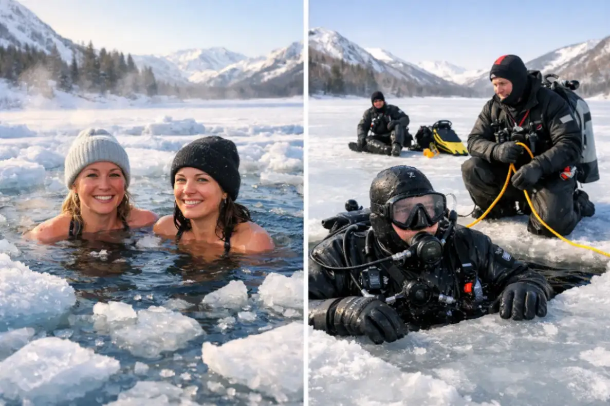 Для здорового человека безопасный старт обычно включает контрастный душ, затем короткие погружения в прохладную воду и только потом — зимнее плавание. Айс-дайвинг возможен исключительно после нескольких сезонов подготовки и под контролем опытных инструкторов.